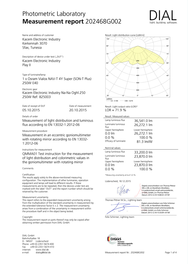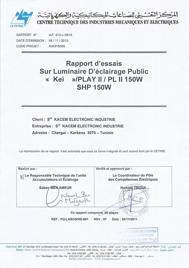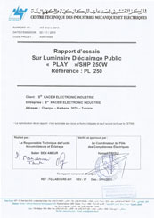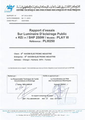 Rapport d'essai pour luminaire d'éclairage public Play II