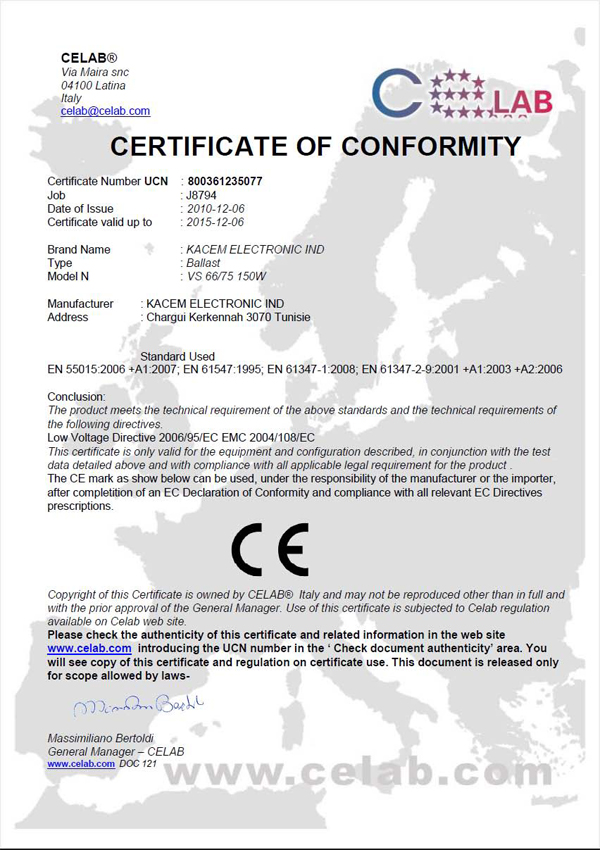 Essais sur Ballasts pour lampe à décharge IND/2000380