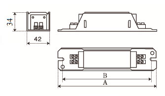 | Puissance (W) | Fréquence (Hz) | Tension primaire (V) | Tension secondaire (V) | Intensité primaire à 230 V (A) | Intensité secondaire à 230 V (A) | Poids (kg) | Dimensions (mm) A | Dimensions (mm) B |