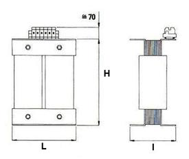 | Puissance (kVA) | Perte (W) | Fréquence (Hz) | Poids (kg) | Dimensions (mm) | ||
